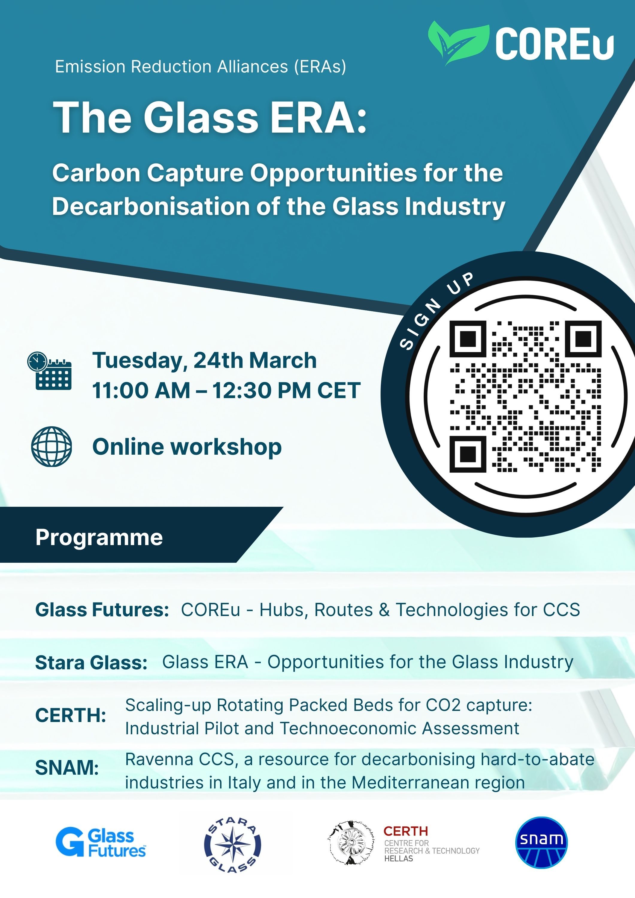 We would like to announce a workshop aimed at interested stakeholders in the glass industry who would like to learn more about carbon capture and storage (CCS). Led by Stara Glass, the Glass Emission Reduction Alliance (ERA) aims to raise awareness and support stakeholders in the glass industry in preparing for future CCS opportunities.
